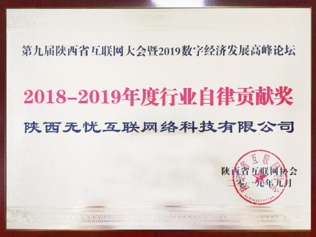 2019年9月,无忧互联荣获陕西互联网2019年度行业自律贡献奖。