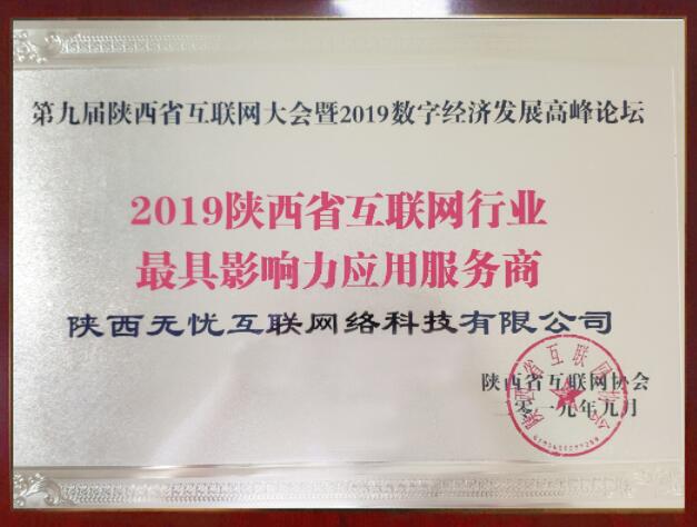 2019年9月,无忧互联荣获2019年陕西互联网行业最具影响力应用服务商奖项。
